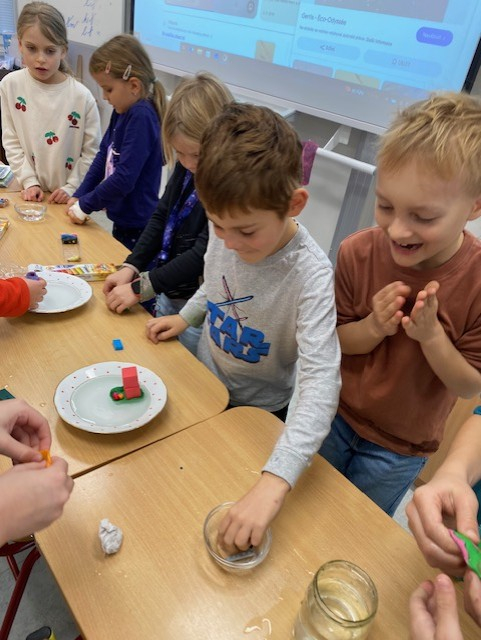 Nejdříve jsme si poslechli pohádku o sýkorce. Ze semínek jsme připravili směs do krmítka, a nakonec jsme krmítko vyrobili.