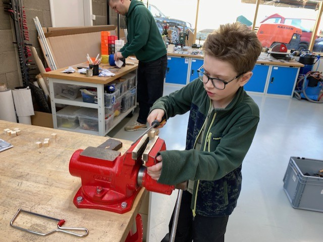Druháci si vyzkoušeli, že práce se dřevem není lehká, ale rozhodně ta námaha stojí za to! Trénink zručnosti a trpělivosti v polytechnické dílně..